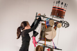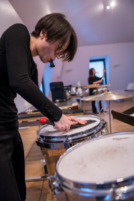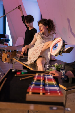 The first concert “The room of one’s own I” portrays Baroness Elsa von Freytag-Loringhoven. After the premiere performance of “Die Baroness” (the baroness) in January 2018, the project was continued in the following year under the title “The room of one’s own II”. This time the group of female percussionists interpret works from Sophie Taeuber-Arp and Hannah Höch, which Ensemble Rot composed in collaboration with the Korean composer Areum Lee into a complete work with percussion and live-performance. With the aim of a diverse and intercultural artistic performance, two composition commissions and premieres were given to Daniel Chernov and Isabel Pardo.